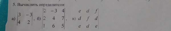 a) 3*2-4*(-3)=6+12=18 б) Раскрываем определитель по правилу треугольника: =2*4*5+(-3)*7*1+4*2*6-4*4*1-2*7*6-(-3)*2*5= в) =e*f*e+d*d*e+f*d*d-f*f*e-e*d*d-d*d*e=