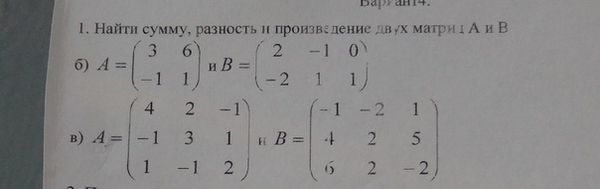 Вариант 4. 1. Найти сумму, разность и произведение двух матриц A и B