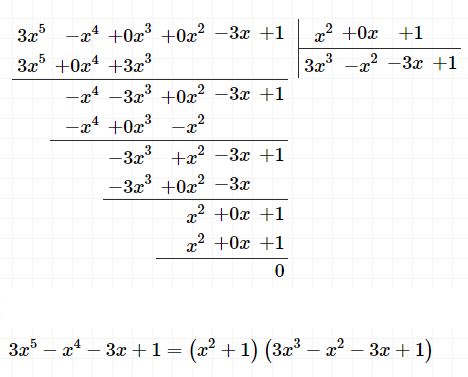2) 3z^5 - z^4 - 3z + 1 = (z^2 + 1)(3z^3 + Kz^2 + Pz + M);