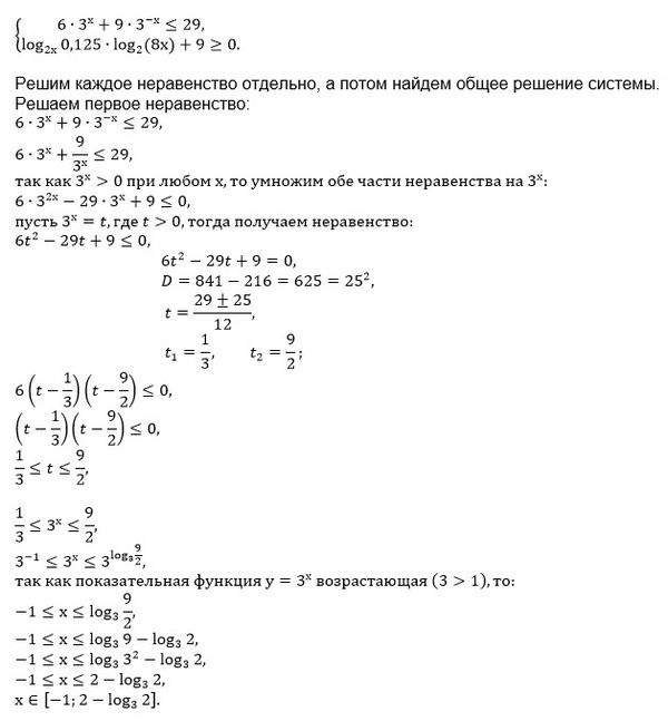 { log(2x) 0.125 * log2 8^x + 9 ≥ 0