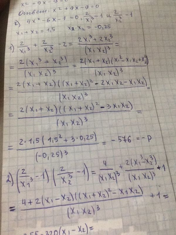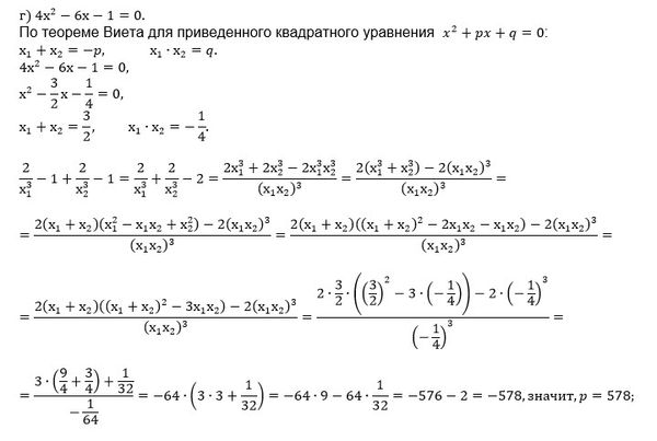 Дорешать задание. Только под буквой г) вторую часть (найти q по теореме Виета не получается). Может быть ошибка и в нахождении -p? (Смотреть фото)
