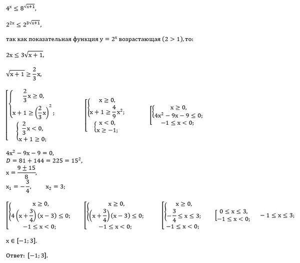 2^(2x) ≤ 2^(3sqrt(x+1))