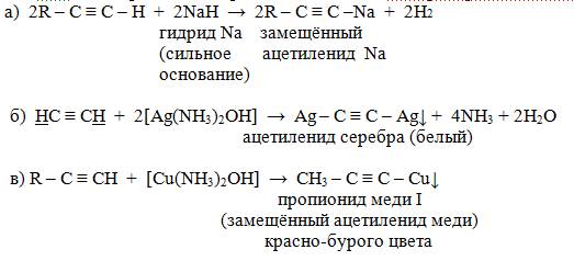 взаимодействуют с щелочными металлами , а также взаимодействуют с ионами меди и серебра в составе аммиачных гидроксокомплексов.