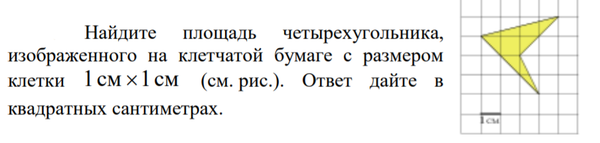 Найдите площадь четырехугольника, изображенного на клетчатой бумаге с размером клетки 1 см х 1 см (см. рис.). Ответ дайте в квадратных сантиметрах.