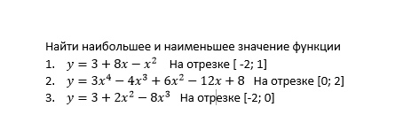 1. y = 3 + 8x - x^2 На отрезке [-2; 1]