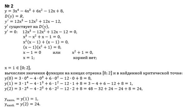 2. y = 3x^4 - 4x^3 + 6x^2 - 12x + 8 На отрезке [0; 2]