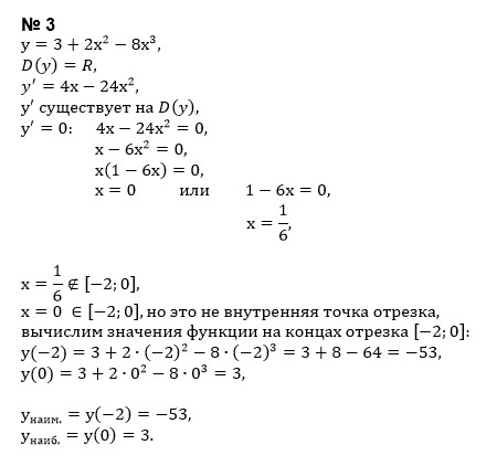 3. y = 3 + 2x^2 - 8x^3 На отрезке [-2; 0]