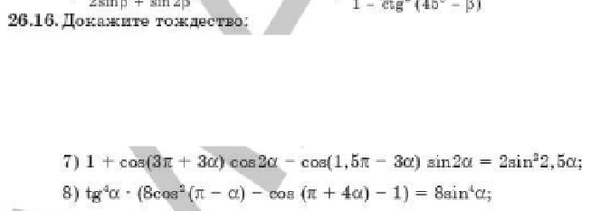 8) tg⁴α⋅(8cos²(π - α) - cos(π + 4α) - 1) = 8sin⁴α;