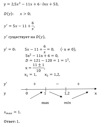 найдите точку максимума функции у=2,5х2-11х+6*lnx+53