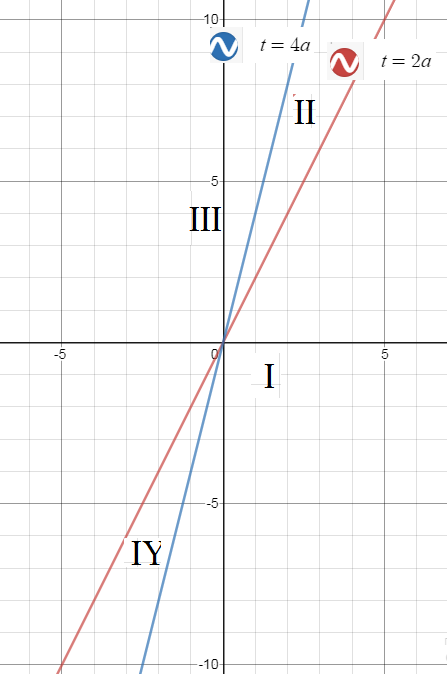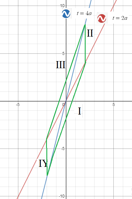 в I области: -t+2a-t+4a=4 ⇒ -2t+6a=4 ⇒t=3a-2