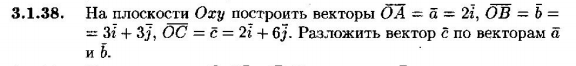 На плоскости Oxy построить векторы OA⃗ = a⃗ = 2i⃗, OB⃗ = b⃗ = = 3i⃗ + 3j⃗, ОС⃗ = с⃗ = 2i⃗ + 6j⃗. Разложить вектор с⃗ по векторам a⃗ и b⃗.