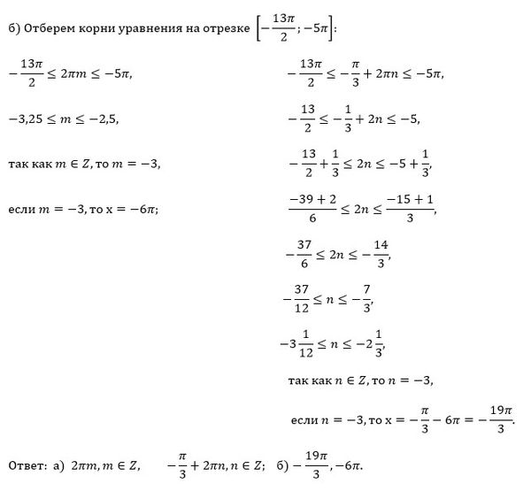 О т в е т. б)Указанному интервалу принадлежат корни:[b]-\frac{19π}{3}[/b];