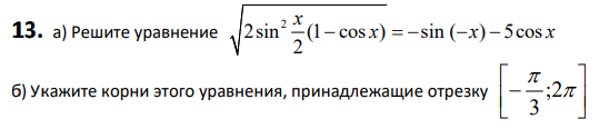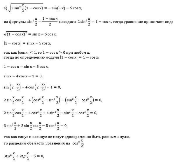 [m]\sqrt{(2sin^2\frac{x}{2})\cdot (2sin^2\frac{x}{2})}=sinx-5cosx[/m]