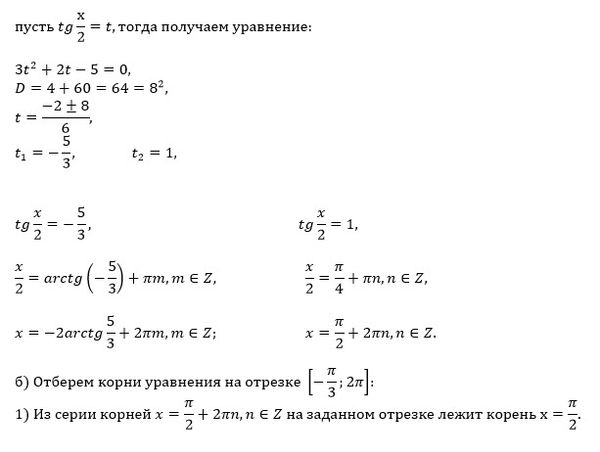 [m]tg\frac{x}{2}=-\frac{5}{3}[/m] или [m] tg\frac{x}{2}=1[/m]