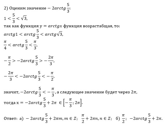 [m]x=\frac{\pi}{2}[/m] и [m]х=2arctg(-\frac{5}{3})+\pi =\pi-2arctg\frac{5}{3}[/m]