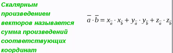 Скалярное произведение векторов, заданных своими координатами равно сумме произведений одноименных координат