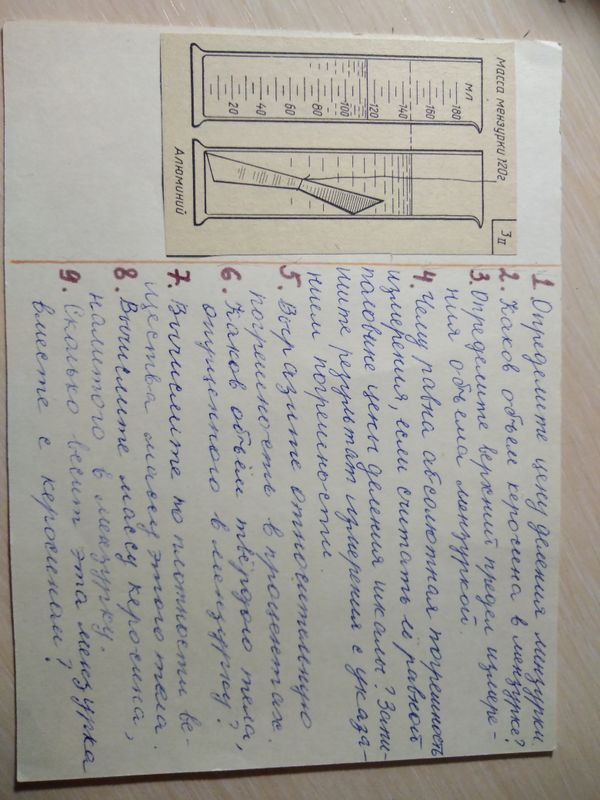 8. вычислите массу керосина, налитого в мензурку.