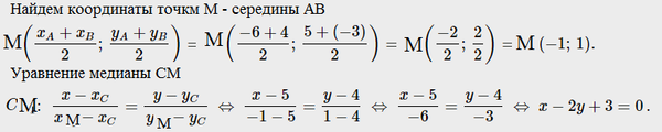 3) уравнение медианы СМ;