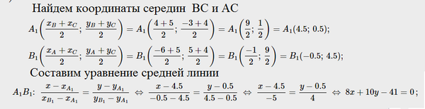 5) уравнение средней линии А1В1 треугольника, параллельной стороне АВ.