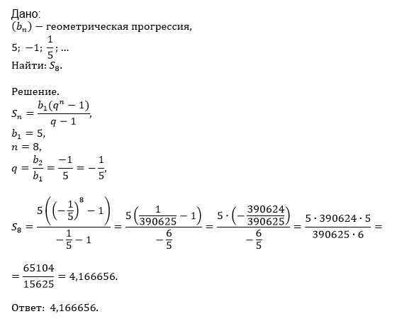 найдите сумму первых восьми членов геометрической прогрессии 5; -1; 1/5