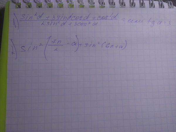 2)sin^2(7pi/2-a)+sin^2(6pi+a)=(sin(2pi+3pi/2-a)^2+sin^2(2pi*3+a)=