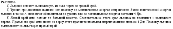 В некоторый момент времени льдинка находилась в точке А с координатой х = 50 см и двигалась влево, имея кинетическую энергию, равную 2 Дж. Сможет ли льдинка выскользнуть из ямы? Ответ поясните, указав, какие физические закономерности вы использовали для объяснения.