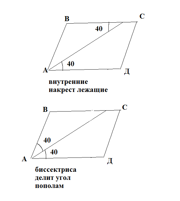 Найдите величину острого угла параллелограмма ABCD если бисектриса угла A образует со стороной BC угол равный 40 градусам. Ответ дайте в градусах