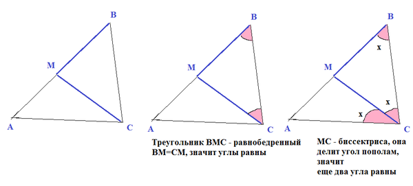 в треугольнике abc проведена биссектриса cm,причём cm=mb.найдите градусную меру угла abc, если величина угла abc равна 54градуса