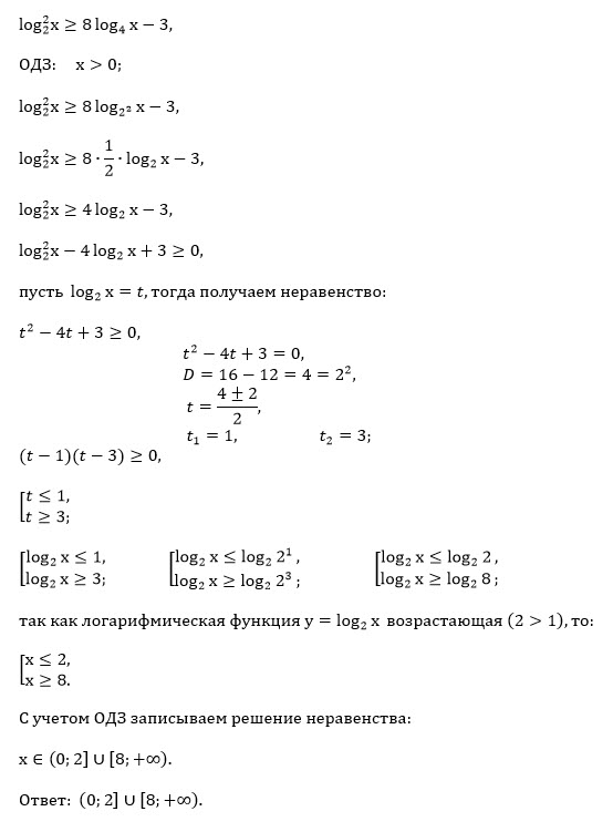 log₂² x ≥ 8 log₄ x - 3