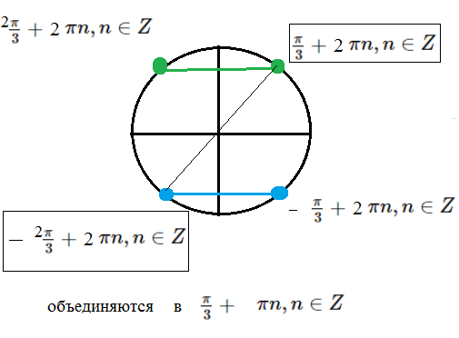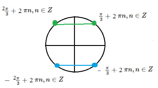 x=(π/3) + 2πn, n ∈ Z или х=(2π/3) +2πn, n ∈ Z