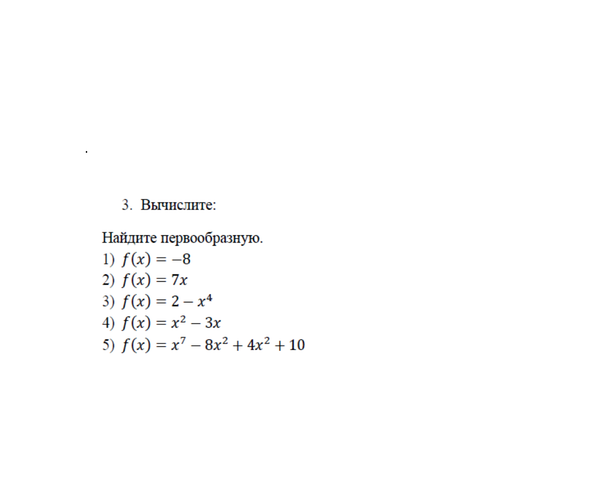 4) F(x)=(x^3/3)-(3x^2/2)+C