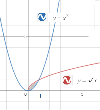 S= ∫ ^(1)_(0)(sqrt(x)-x^2-sqrt(x))dx=(x^(3/2)/(3/2))|^(1)_(0)-(x^3/3)|^(1)_(0)= =(2/3)-(1/3)=1/3 О т в е т. 1)