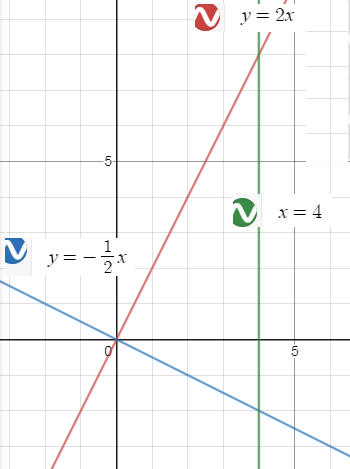 Найдите площадь треугольника ограниченного прямыми у=2х, у=-х/2; х=4