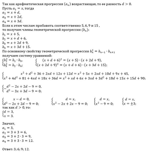 a+5; a+d+6; a+2d+9;a+3d+15 - составят геометрическую прогрессию