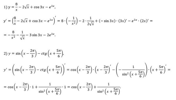 1) y = 8/x - 2√x + cos 3x - ℓ²ˣ