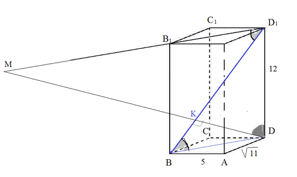 Прямоугольные треугольники Δ D_(1)BD и MDD_(1) подобны по двум углам.