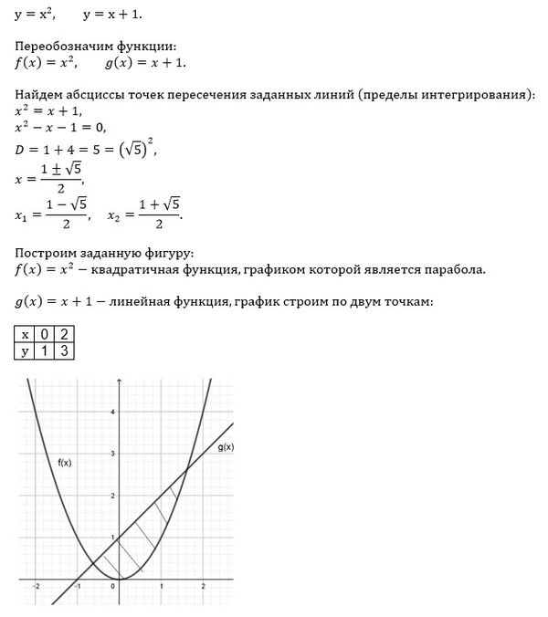 Найти площадь фигуры, ограниченной линиями y = x^2, y = x + 1