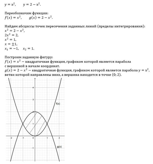 Найти площадь фигуры, ограниченной линиями y = x² , y = 2 - x²