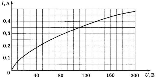 На рисунке изображена зависимость силы тока через лампу накаливания от приложенного к ней напряжения. При параллельном соединении двух таких ламп и источника, сила тока в цепи оказалась равной 0.7А. Каково напряжение на клемах источника?