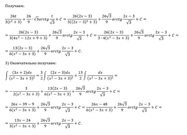 [m]=\frac{26(x-1,5)-9}{6(x^2-3x+3)}+\frac{26\sqrt{3}}{9}arctg\frac{2(x-1,5)}{\sqrt{3}}+C=[/m]