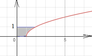 Вычислите площадь фигуры ограниченной линиями y=sqrt(x-1), y=1, y=0, x=0