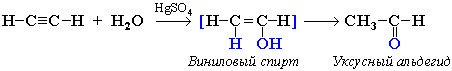 Из предложенного перечня выберите два вещества, которые можно получить при гидратации соответствующих углеводородов. (14) 1) уксусный альдегид 2) масляный альдегид 3) метанол 4) бензойная кислота 5) изопропанол