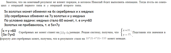 • за 10 серебряных монет получить 7 золотых и одну медную.