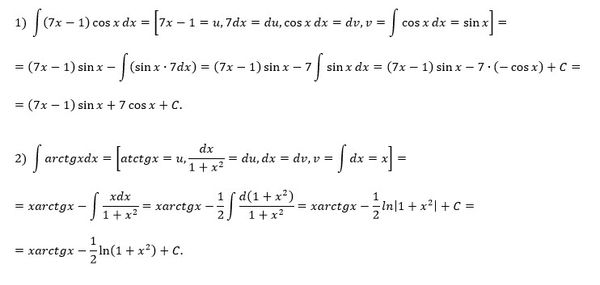 1) ∫(7x-1)cos x dx ∫ arctg x dx