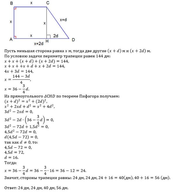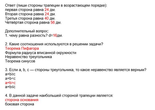 Ответ (пиши стороны трапеции в возрастающем порядке):