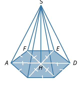 Шестиугольник состоит из шести правильных треугольников. HА=HF=HE=HD=AF=FE=ED и т.д. см рис. Поэтому по теореме Пифагора из Δ SHD SD^2=SH^2+HD^2=(4sqrt(3))^2+1=48+1=49 SD=[b]7[/b]