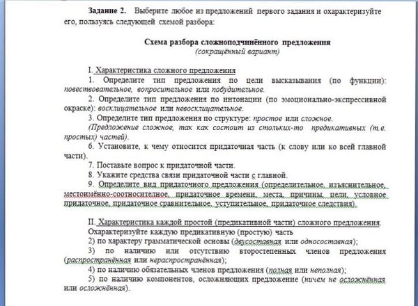 Задание 2. Выберите любое из предложений первого задания и охарактеризуйте его, пользуясь следующей схемой разбора:
