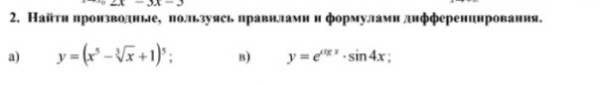 2. Найти производные, пользуясь правилами и формулами дифференцирования.