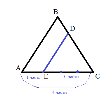 Точка E лежит на стороне AC треугольника ABC, причём EC/AE=3. Точка D лежит на BC, причём ED∥AB. Найдите AB, если ED=6/4.