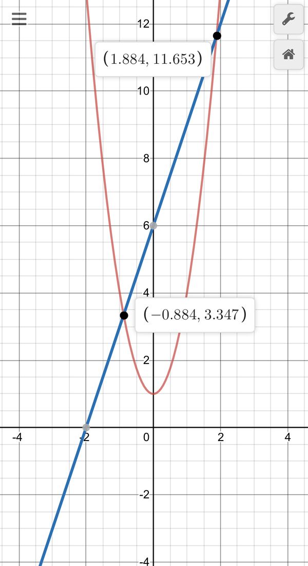 y = 3x² + 1, y = 3x + 6